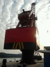主要安装在专用的船体或趸船上进行船与岸或船与船之间的装卸作业,该机转盘重心较底,稳定性好,运转灵活,是沿海、沿江、湖泊及内河理想的装卸设备。